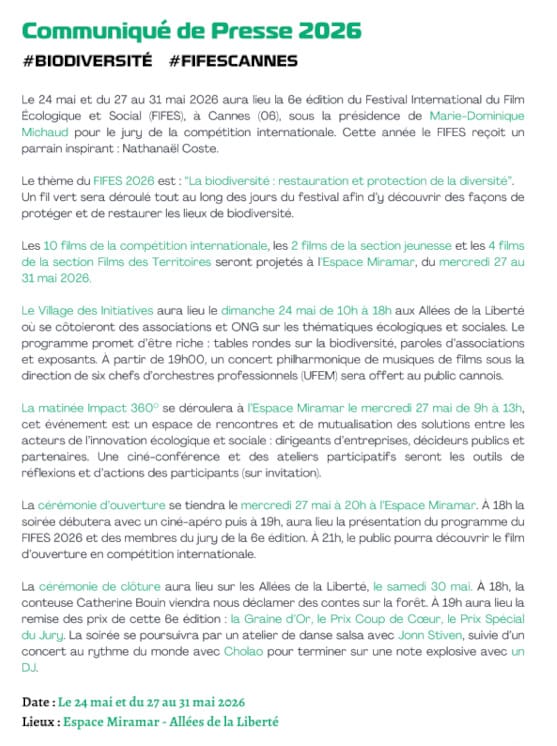 PresseDossier de presse, communiqué de presse, affiches et kit jeunesse Téléchargez le communiqué de presse 2026 Téléchargez l'affiche 2026 Téléchargez le kit Jeunesse 2026 Ils/elles parlent de nous !Articles de presse, interviews Voir l'article de Nice Matin Voir l'article de La Strada Voir l'interview de James Gérard Voir l'article de Cannes Soleil Voir l'article de France Net Info Voir l'article des petites affiches
